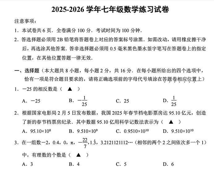 • 南京民办求真中学2025-2026学年七年级上学期第