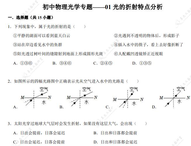 八上物理专题《光学作图专题突破》《光的折射特点分析》PDF电子版下载