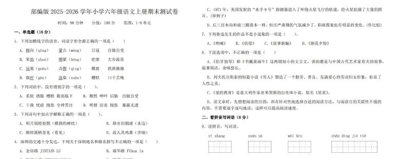 1.下列加横线字的读音、词语字形全都正确的一项是( )