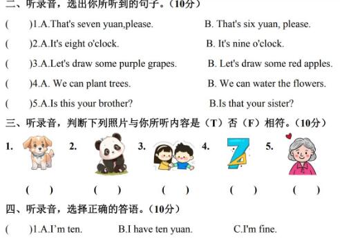 二、听录音,选出你所听到的句子。(10分)